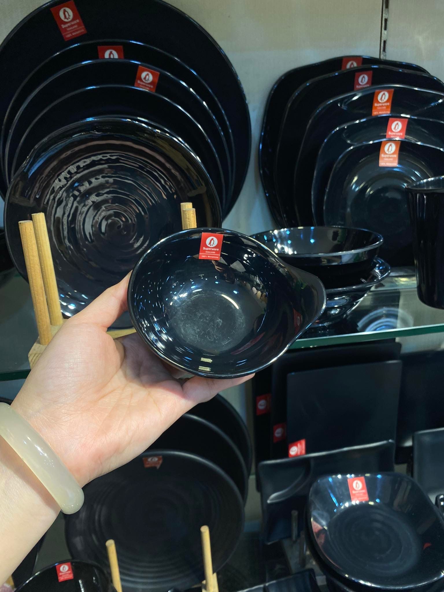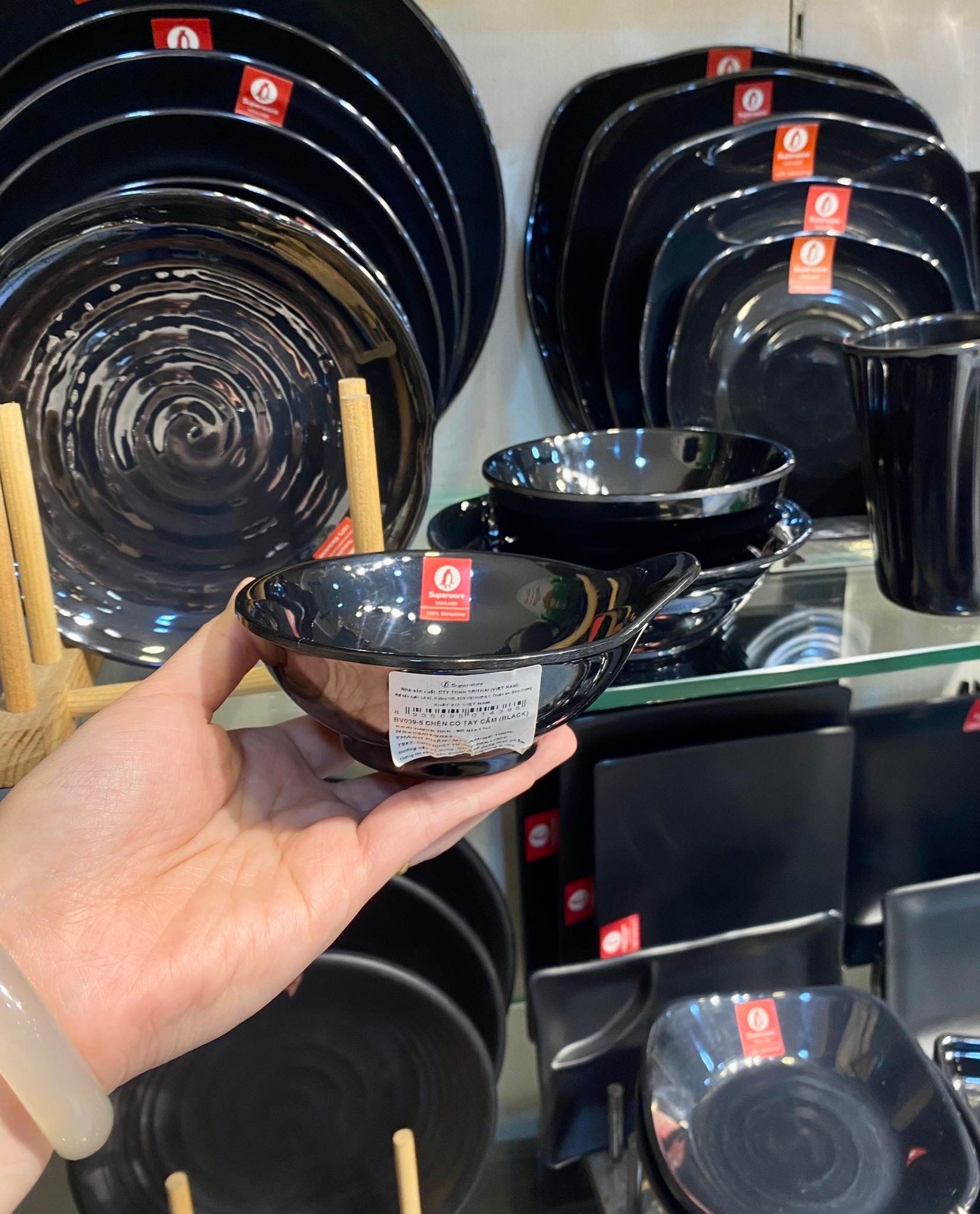Đặc điểm riêng của bát có tay cầm melamine Thái Lan Superware đen bóng