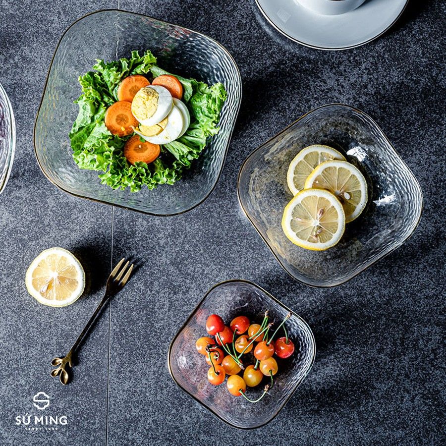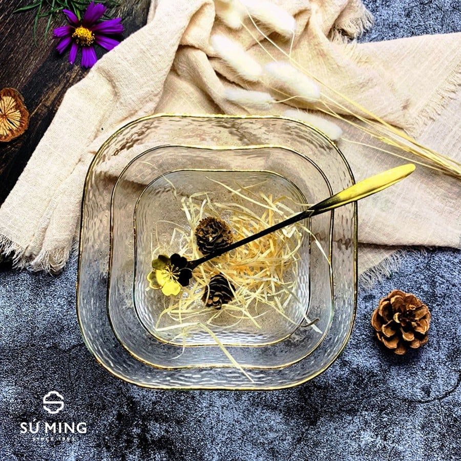 Bát Tô Thuỷ Tinh Đẹp [NHẬT BẢN][VIỀN VÀNG] đựng hoa quả, salad, trang trí nhà cửa đẹp, thuỷ tinh chịu nhiệt