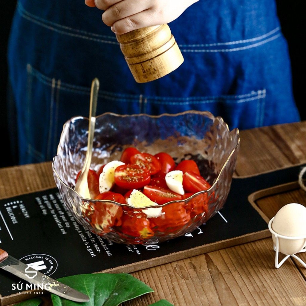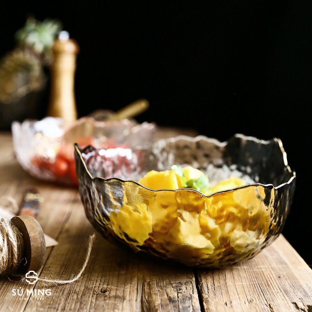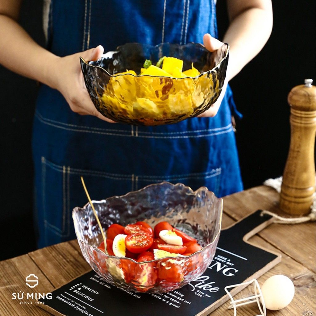 Bát Tô Thuỷ Tinh Đẹp [NHẬT BẢN][VIỀN VÀNG] đựng hoa quả, salad, trang trí nhà cửa đẹp, thuỷ tinh chịu nhiệt