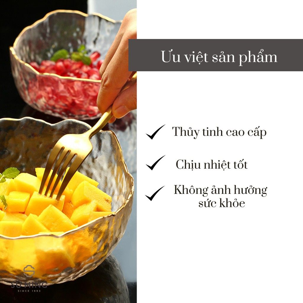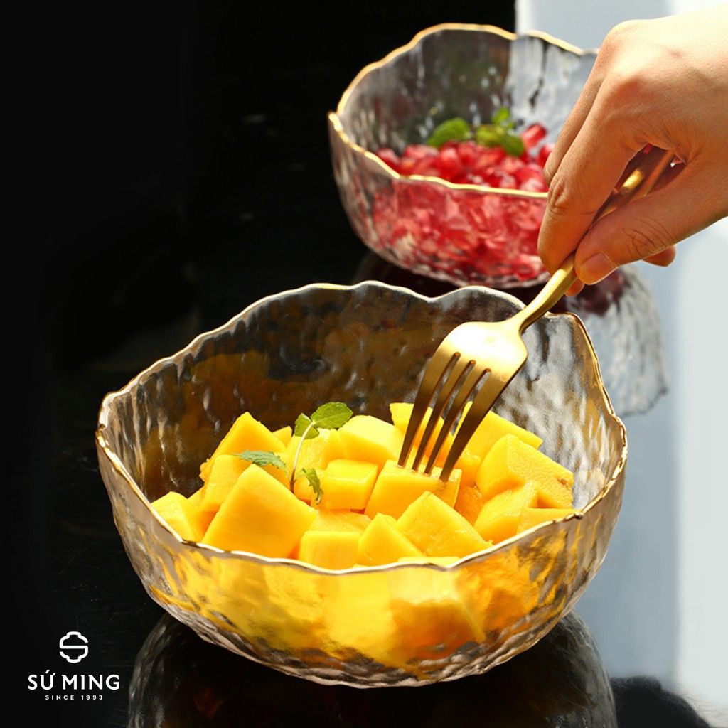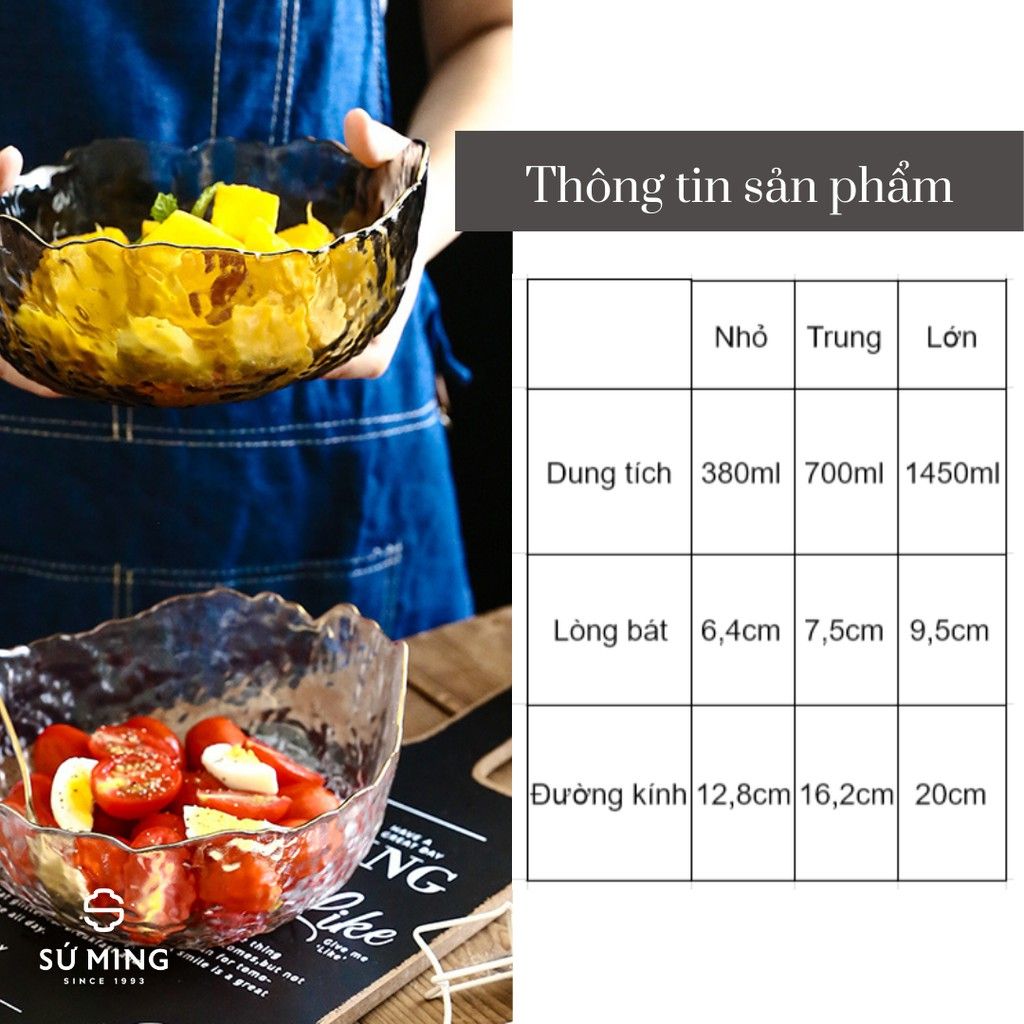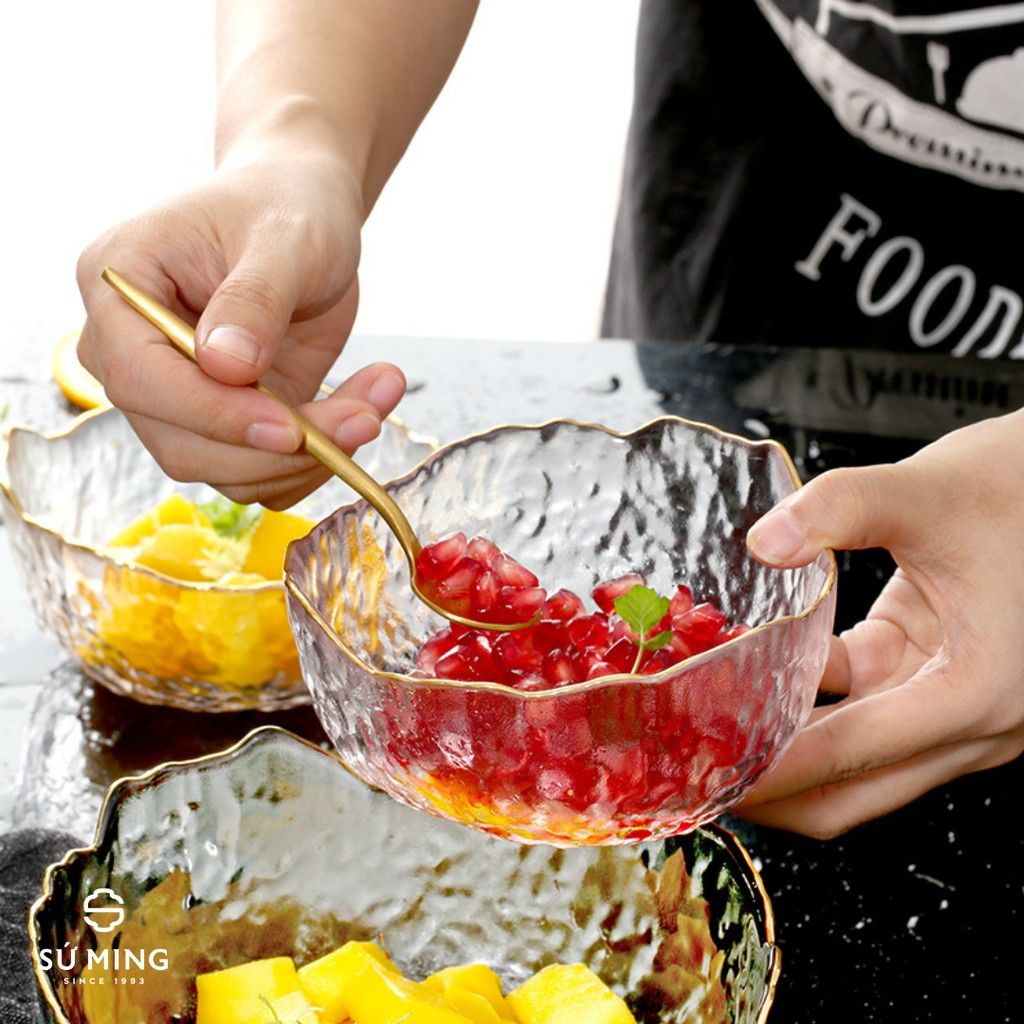 Bát Tô Thuỷ Tinh Đẹp [NHẬT BẢN][VIỀN VÀNG] đựng hoa quả, salad, trang trí nhà cửa đẹp, thuỷ tinh chịu nhiệt