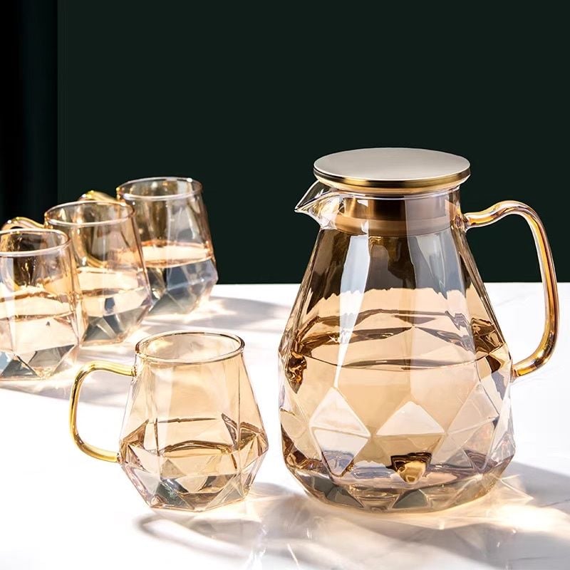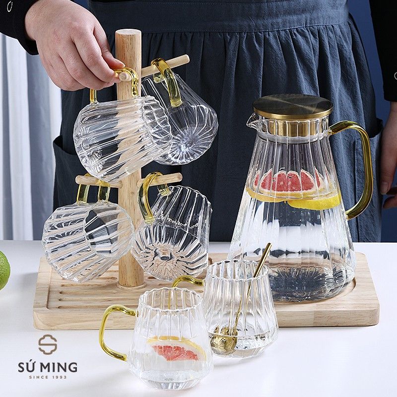 🌿 Được cấu tạo từ thuỷ tinh chịu nhiệt cao cấp, bền chắc, bộ bình cốc thuỷ tinh là điểm nhấn đẹp trong bộ thuỷ tinh uống nước sang trọng trong nhà