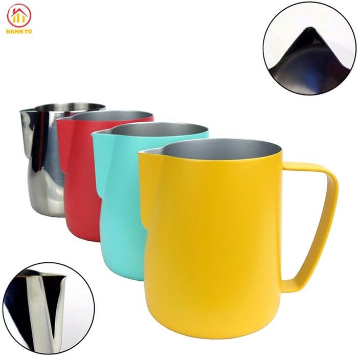 Ca inox có màu sắc đa dạng, dùng để rót sữa hoặc rót nước nóng hay cũng có thể làm đồ mix. Chất liệu inox 304 phù hợp vệ sinh an toàn thực phẩm.