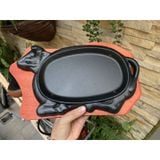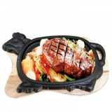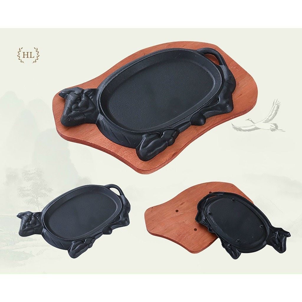 Chảo Gang Chống Dính Đầu Bò Cỡ Lớn Kèm Đế Gỗ , Chảo Bò Né Đế Lót Gỗ Chống Dính Làm Bít Tết Các Loại