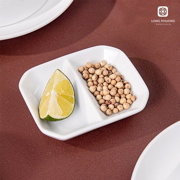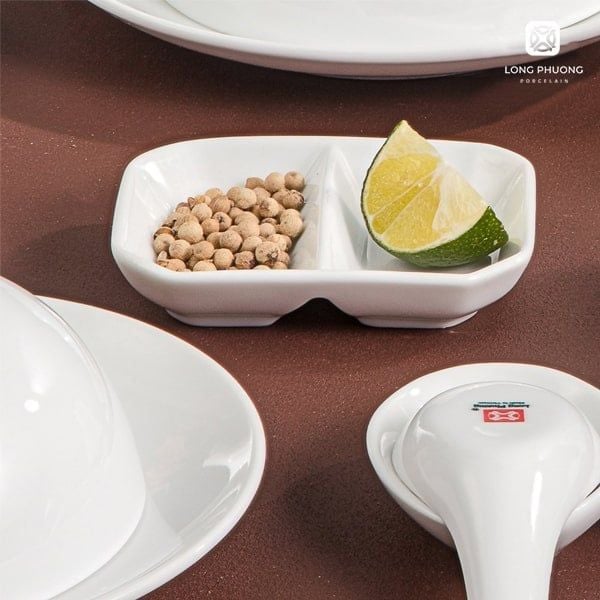 Chén chấm 2 ngăn Long Phương sứ trắng cao cấp – Sự lựa chọn hoàn hảo cho các Nhà Hàng, Khách Sạn, Quán Ăn