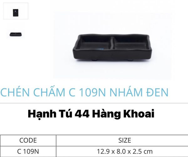Chén chấm Chữ Nhật 2 ngăn Đen nhám Melamine Fataco Việt Nam CC 58N