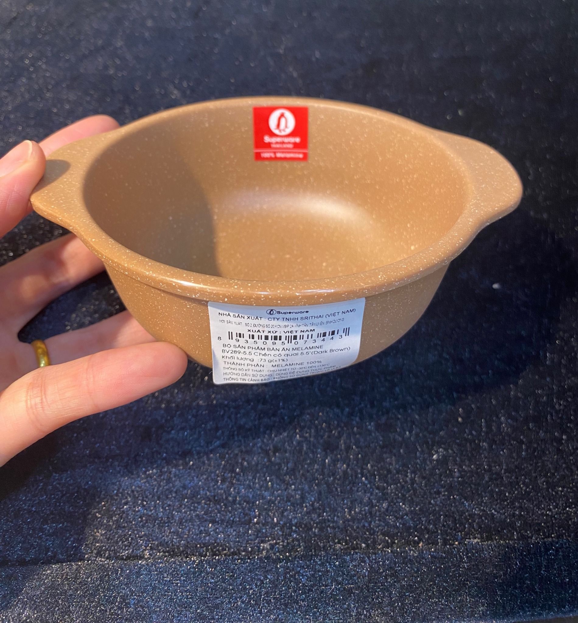 Dòng bát, đĩa được sản xuất từ nhựa Melamine là sự kết hợp hoàn hảo giữa những đặc tính tốt nhất của nhựa và sứ. Vì thế, Bát, đĩa, tô, khay gia vị, cốc Melamine Superware nhìn như bát, đĩa sứ nhưng lại có trọng lượng nhẹ nhàng, khó sứt mẻ, khó trầy xước, không bám màu. Hơn nữa, bề mặt màu nâu mờ của bát, đĩa mang lại sự sang trọng, tinh tế và đẳng cấp khác biệt cho bàn ăn của bạn. Chính vì vậy, bộ sản phẩm bát đĩa Melamine nâu nhám được sử dụng phổ biến trong rất nhiều khách sạn cao cấp, nhà hàng buffet lẩu nướng, nhà hàng theo phong cách Nhật Bản, Hàn Quốc.