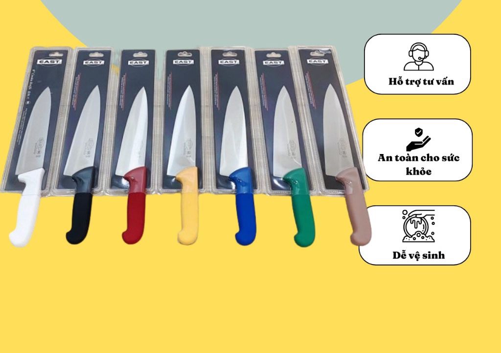Dao bếp Âu cán nhựa nhiều màu đủ kích cỡ 8-10-12 inch siêu bén hiệu EAST
