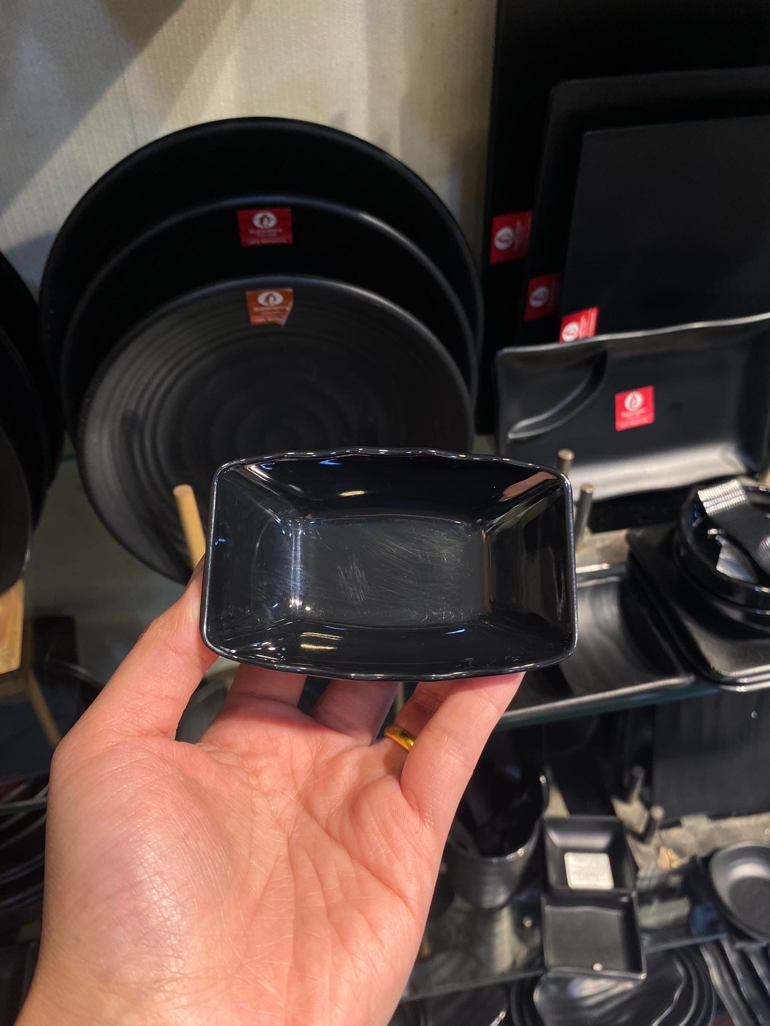 Đĩa chấm gia vị Superware đen bóng Melamine Thái Lan – Dòng bát, đĩa cao cấp chuyên dùng cho các nhà hàng, khách sạn, quán ăn, tiệc BBQ…