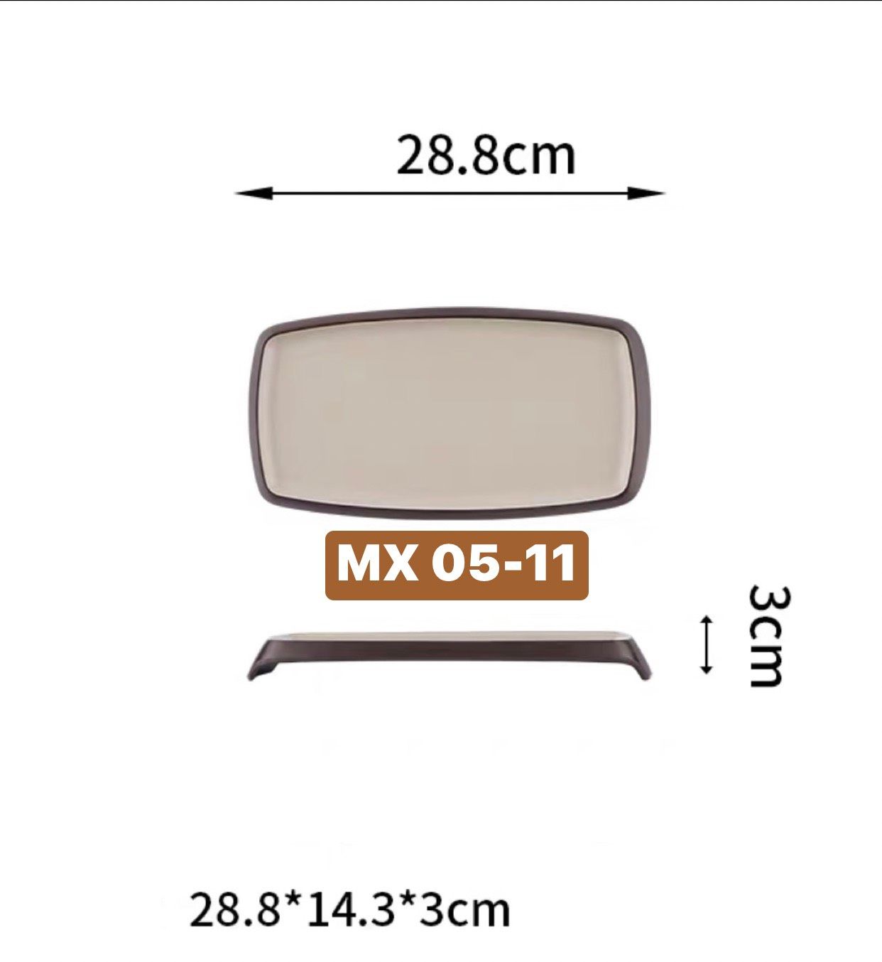 Đĩa chữ nhật Decor màu nâu Melamine Hạnh Tú .Dòng bát, đĩa cao cấp chuyên dùng cho các nhà hàng, khách sạn, quán ăn, tiệc BBQ…