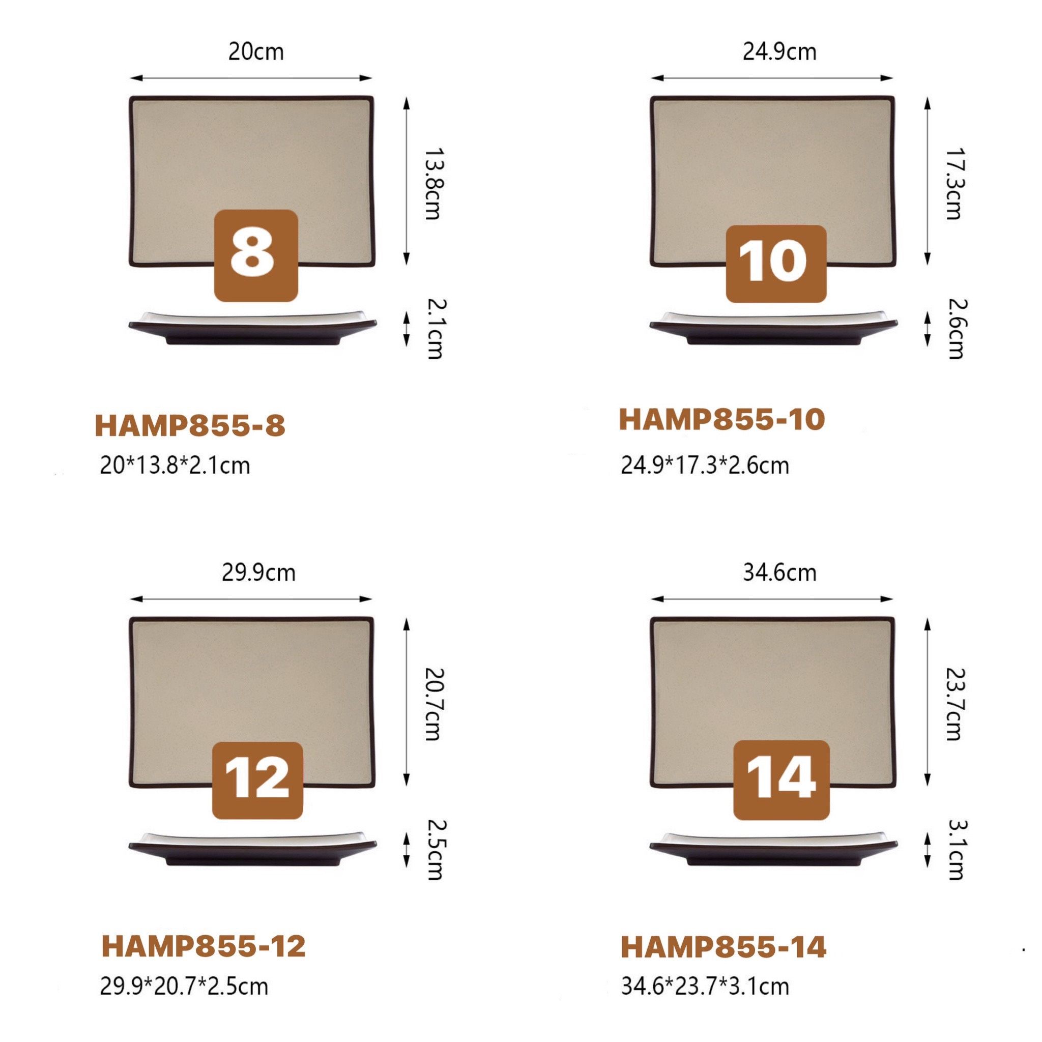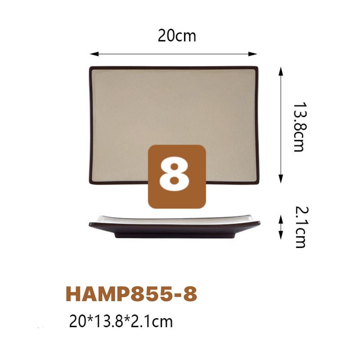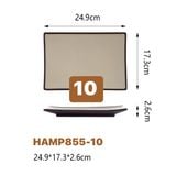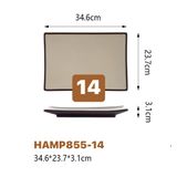 Đĩa chữ nhật HAMP melamine màu Nâu nằm trong bộ sản phẩm Melamine thuộc dòng bát, đĩa cao cấp chuyên dùng cho các nhà hàng, khách sạn, quán nướng, quán ăn… theo phong cách Nhật Bản và Hàn Quốc.