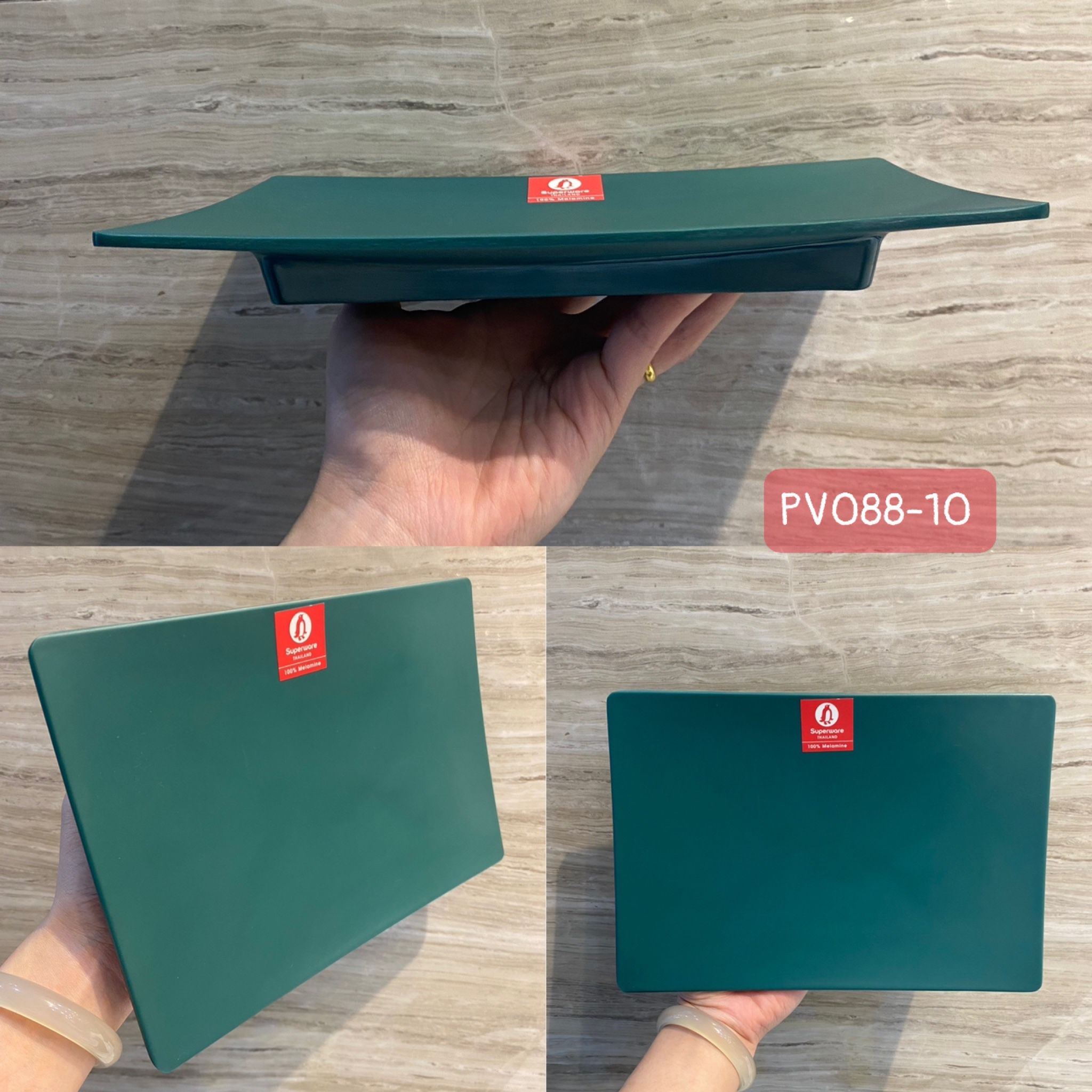 Đĩa chữ nhật nằm trong bộ sản phẩm Melamine “xanh lục” thuộc dòng bát, đĩa Thái Lan cao cấp của thương hiệu SRITHAI chuyên dùng cho các nhà hàng, khách sạn, quán nướng, quán ăn… theo phong cách Nhật Bản và Hàn Quốc.