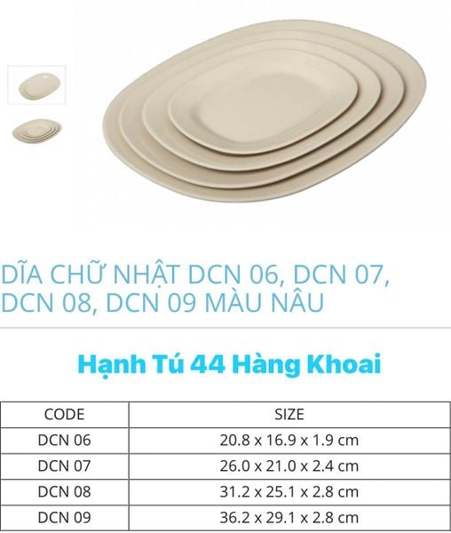 Đĩa chữ nhật Melamine Fataco cao cấp màu nâu