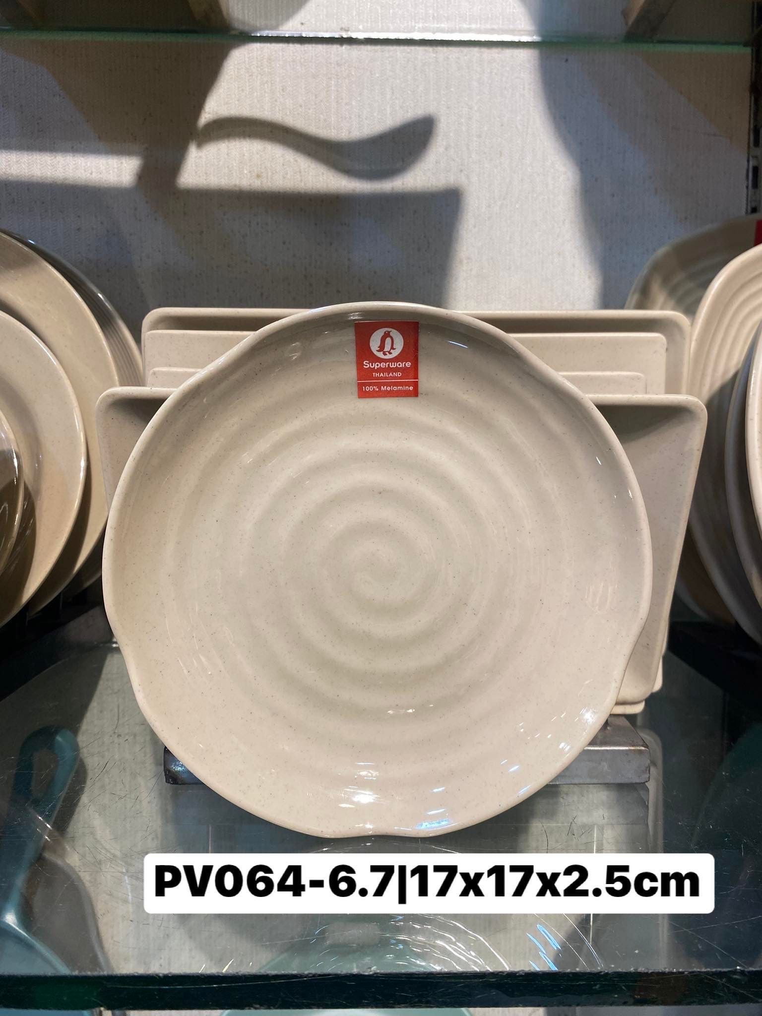 Đĩa kiểu tròn vân xoáy Superware Nâu Đá Sirithai Superware