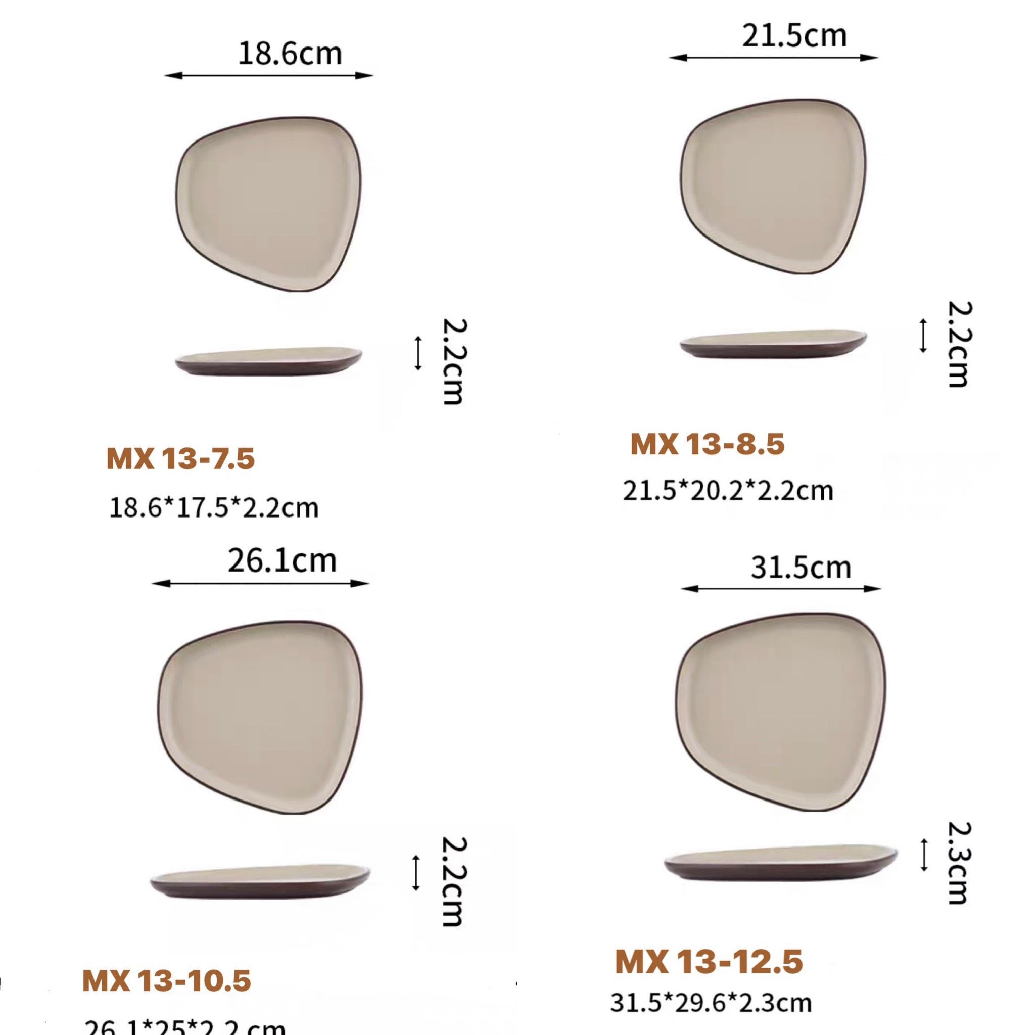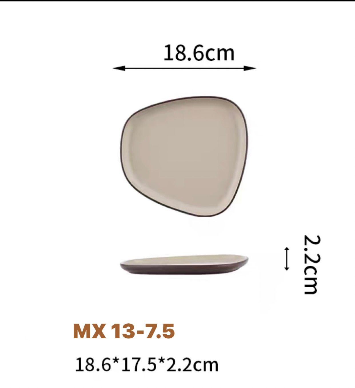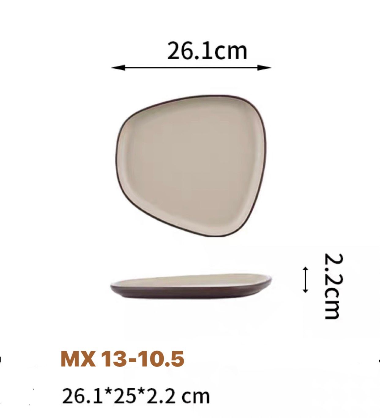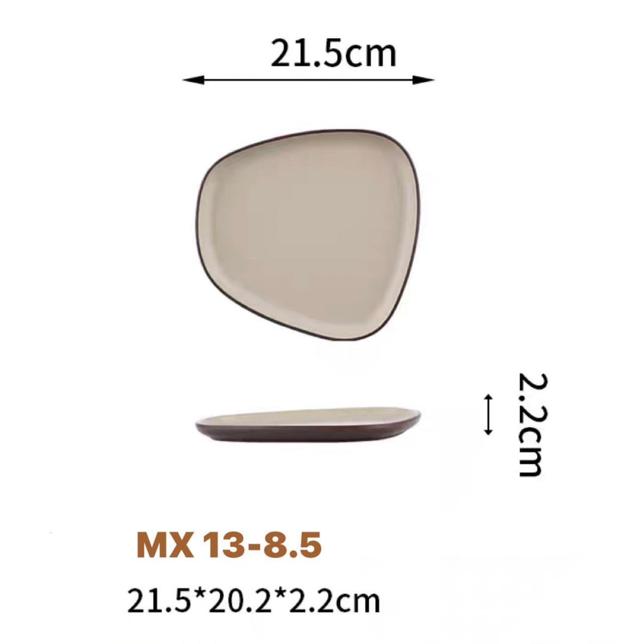 Đĩa lệch MX 13 Melamine Hạnh Tú cao cấp màu nâu ghi vân gốm