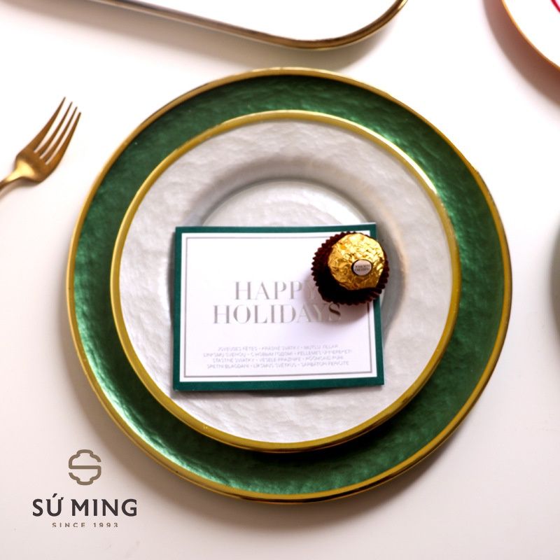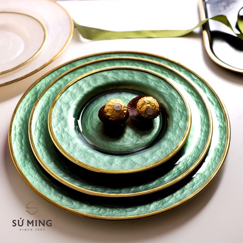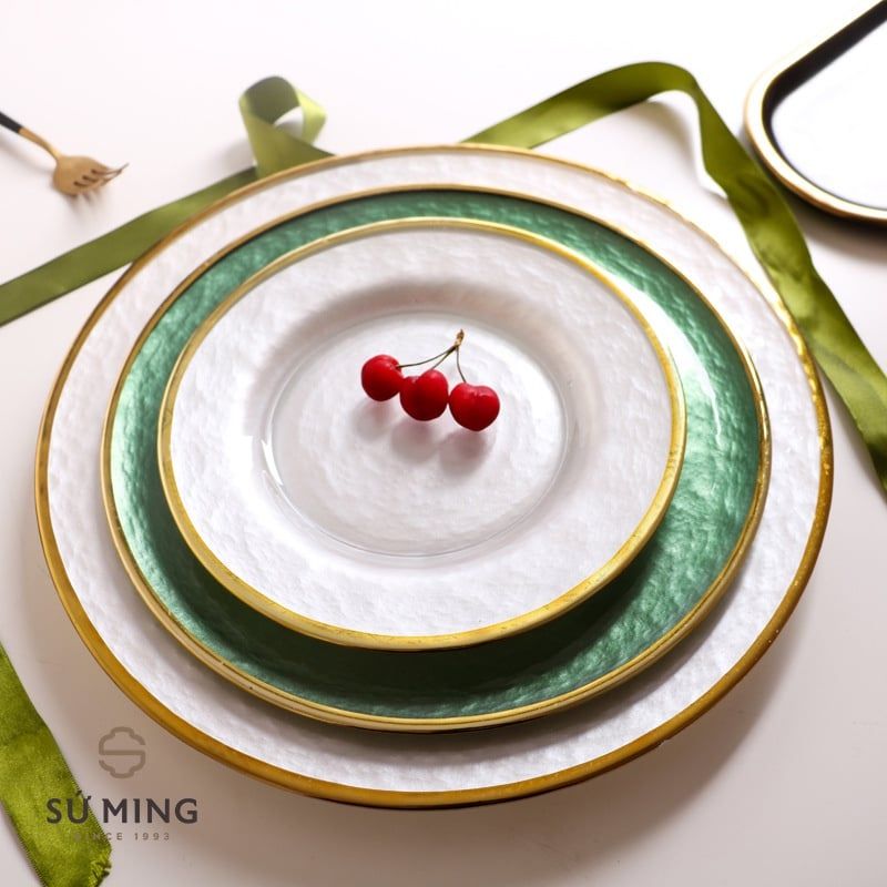 Đĩa Sứ Ngọc Trai 2 Màu Xanh Ngọc và Trắng Phong Cách Nhật Bản Cao Cấp