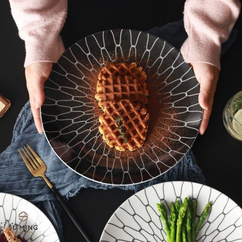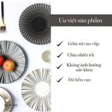 🌿 Đĩa sứ trang trí họa tiết sọc được cấu tạo từ sứ cao cấp, mang lại sự tinh tế và đậm bản sắc của phong cách phương Tây.