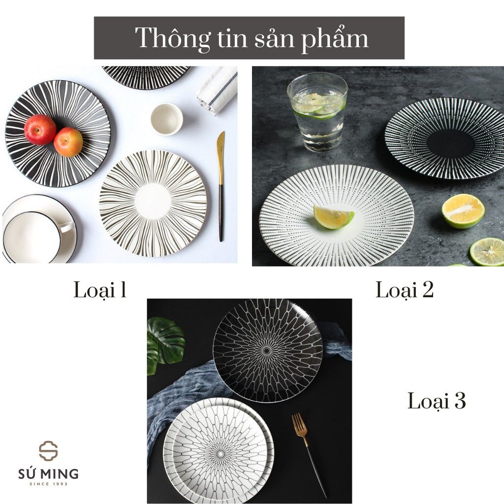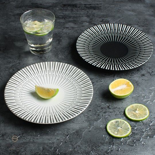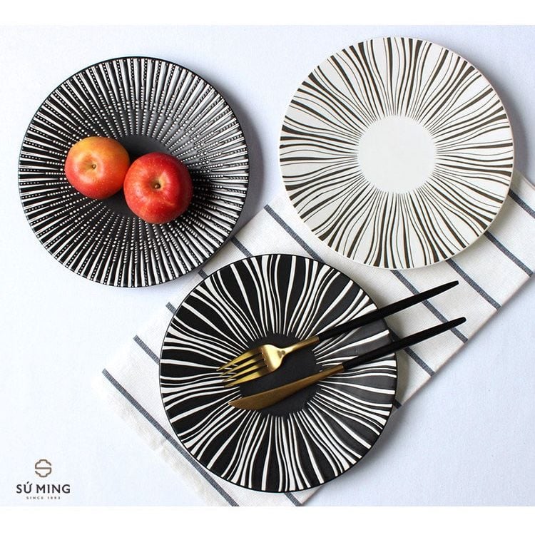 Đĩa Sứ Trang Trí Decor Họa Tiết Sọc Phong Cách Bắc Âu Chất Lượng Cao