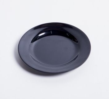 Đĩa tròn cạn DC đen bóng chuyên dùng cho các nhà hàng theo phong cách Nhật Bản.