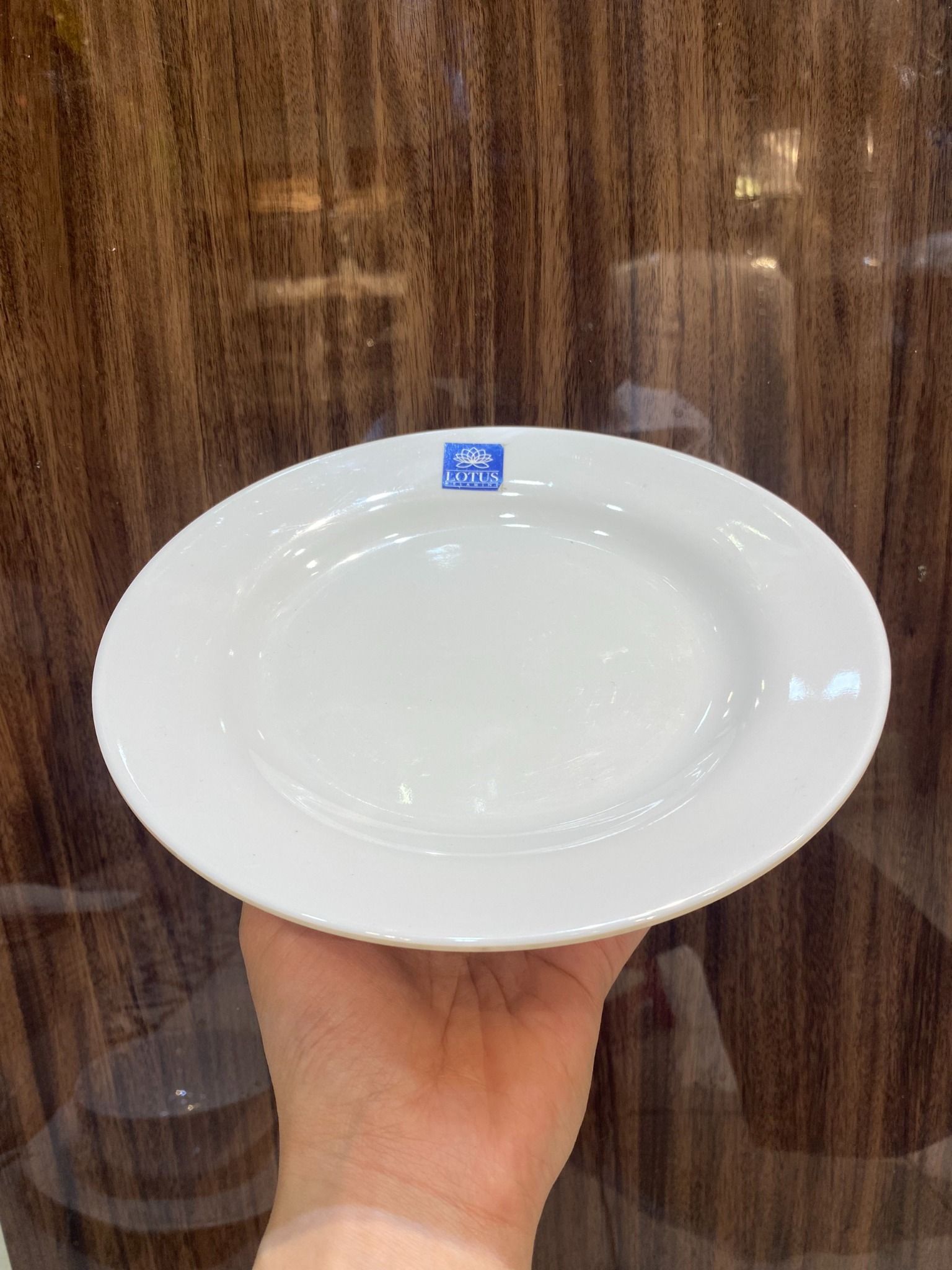 Đĩa tròn màu trắng bóng nhựa Melamine Lotus với kiểu dáng tròn cứng cáp. Bát tiện lợi được cách điệu bo cong trên viền đĩa, phù hợp cho các món ăn nhà hàng .