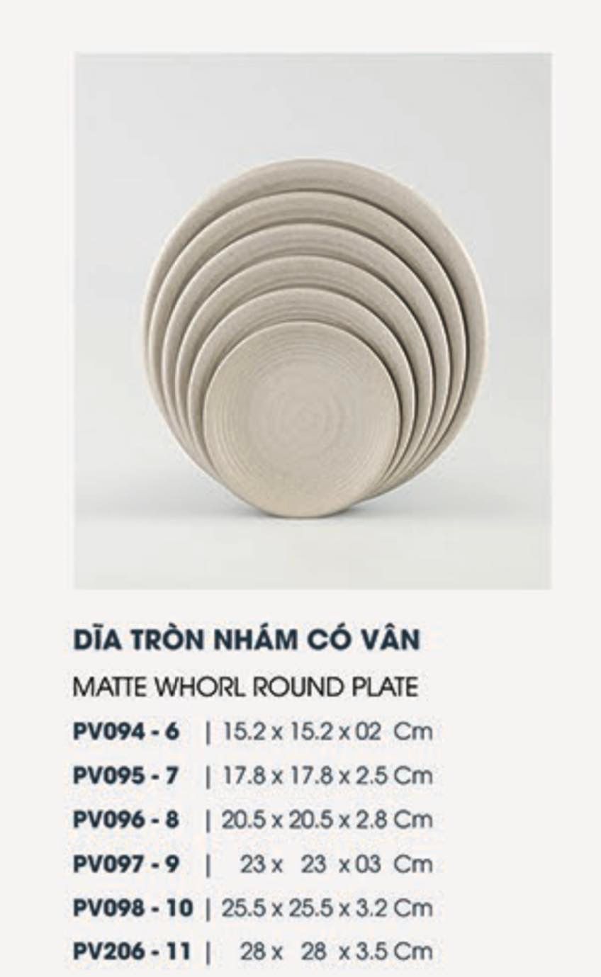 Đĩa tròn nhám cách điệu có vân nâu nhám Thái Lan phù hợp bày trí mọi món ăn trên bàn tiệc tới bữa ăn gia đình