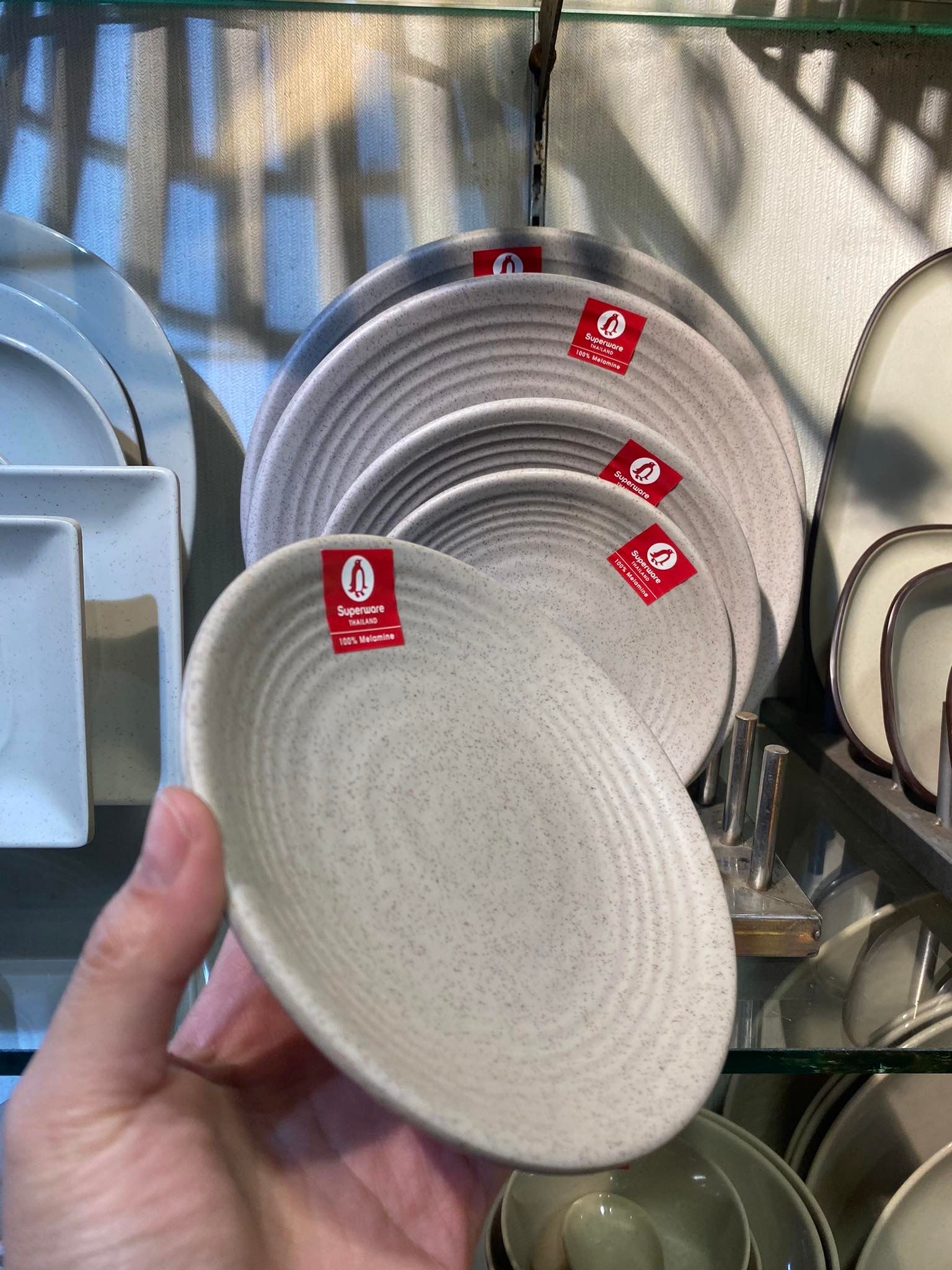 Đĩa tròn nhám có vân Melamine Thái Lan – Dòng bát, đĩa cao cấp chuyên dùng cho các nhà hàng, khách sạn, quán ăn, tiệc BBQ…
