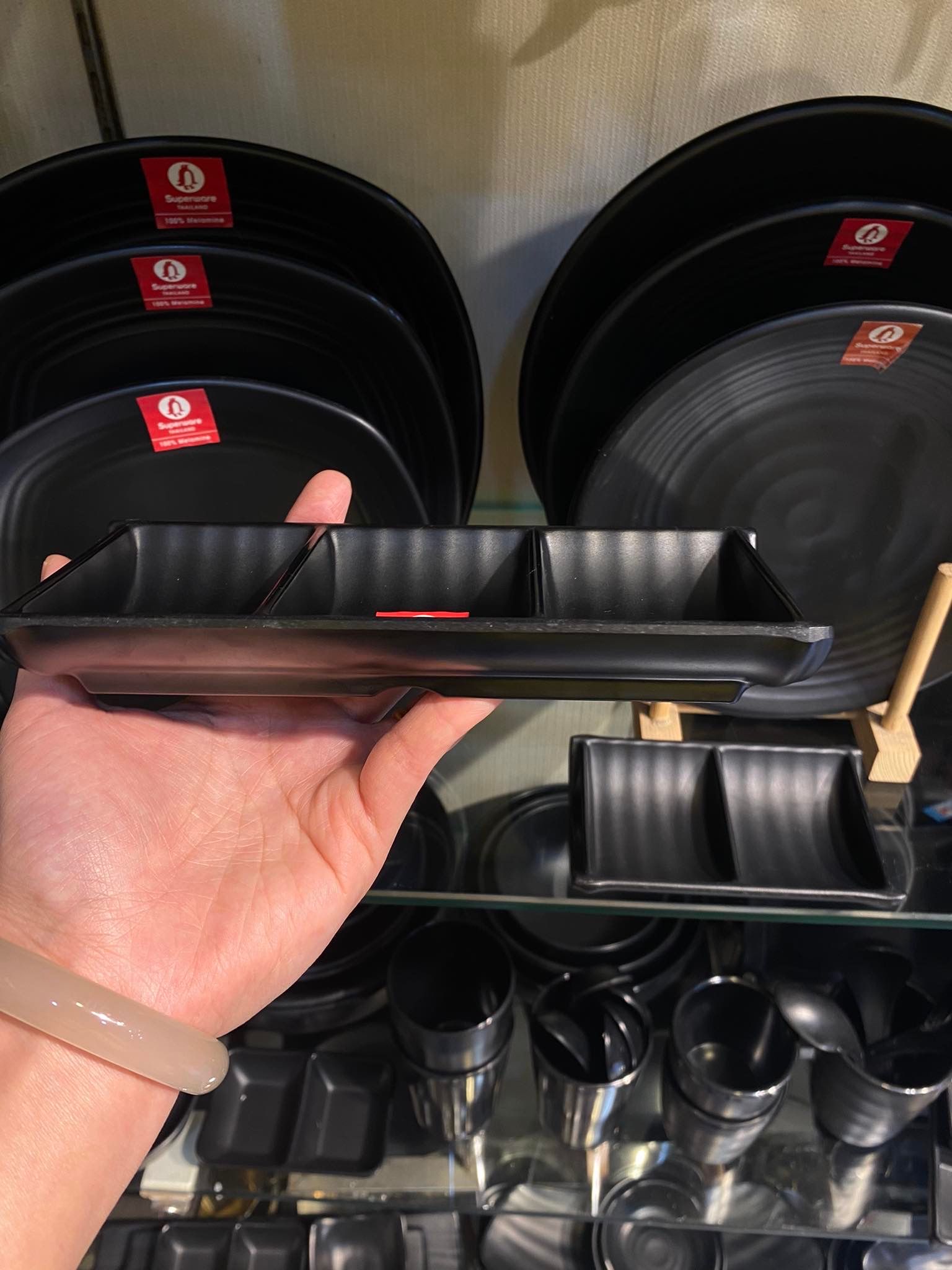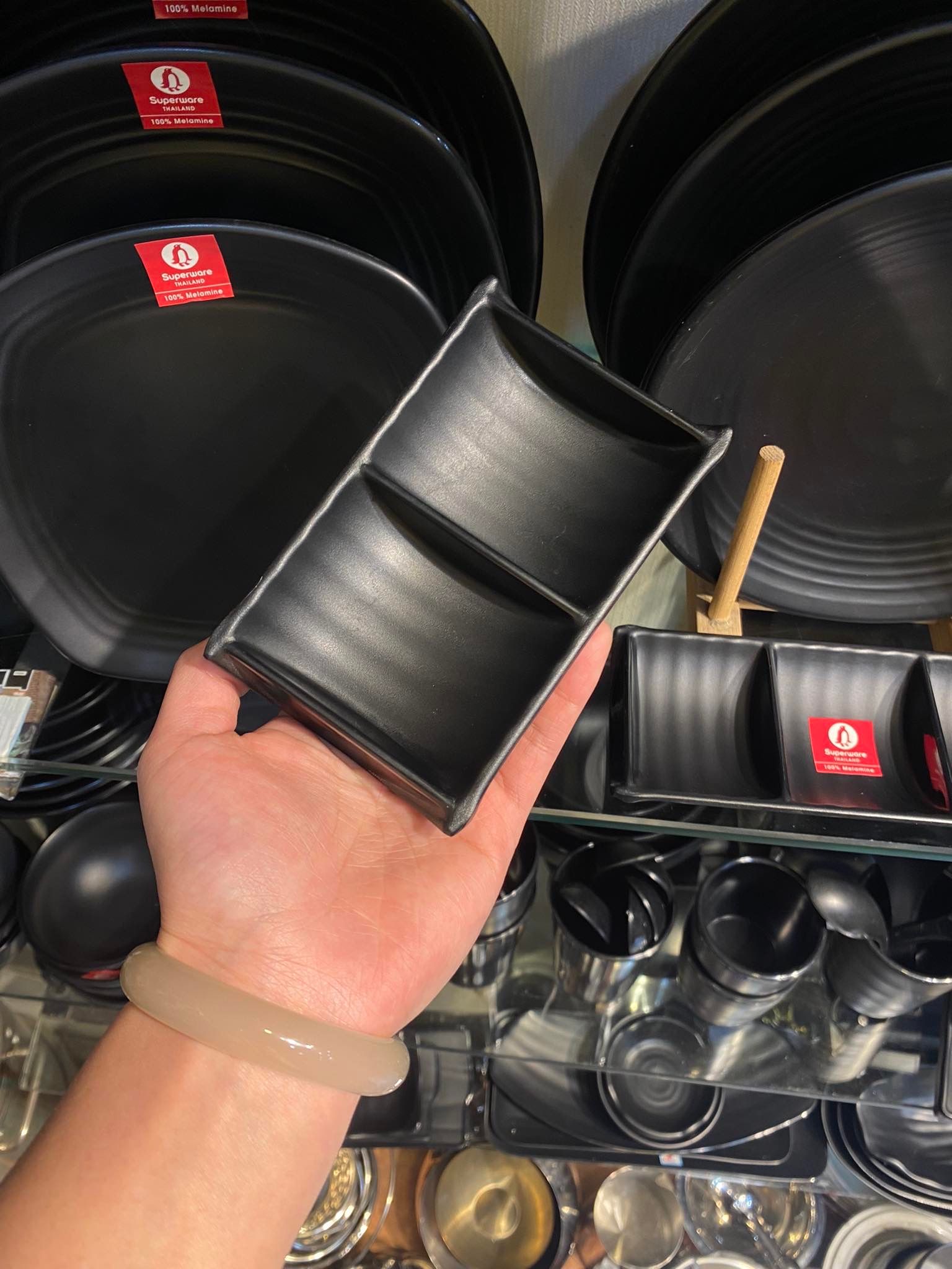 Đĩa gia vị 2 ngăn, 3 ngăn Thái Lan Superware đen nhám chuyên dùng cho các nhà hàng theo phong cách Nhật Bản