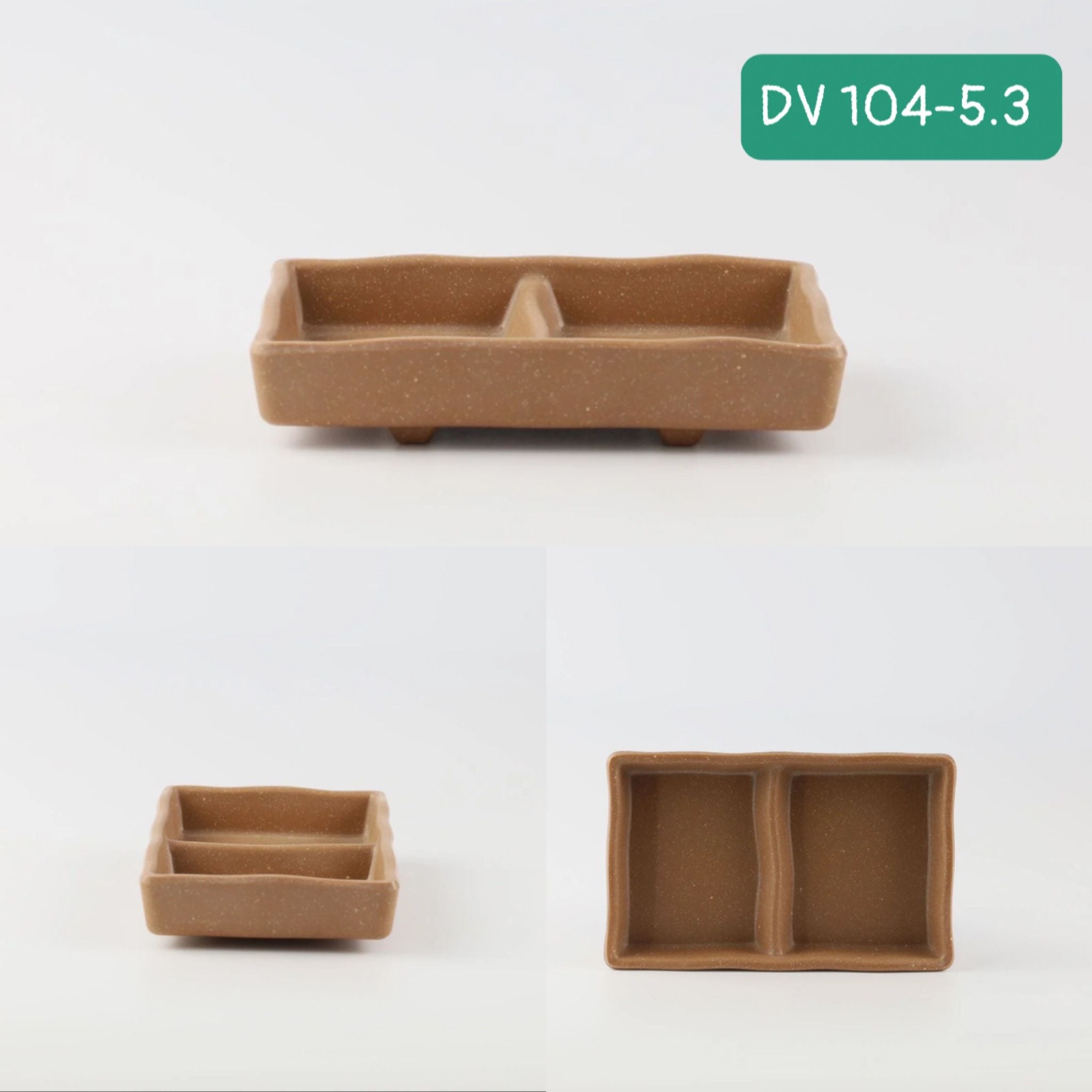 Đĩa gia vị 2 ngăn Thái Lan Superware nâu gốm chuyên dùng cho các nhà hàng theo phong cách Nhật Bản