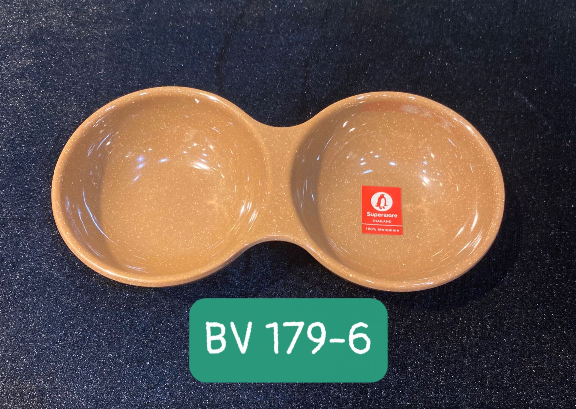 Đĩa tương gia vị 2 ngăn melamine Superware nằm trong bộ sản phẩm Melamine “nâu gốm” thuộc dòng bát, đĩa Thái Lan cao cấp của thương hiệu SRITHAI chuyên dùng cho các nhà hàng, khách sạn, quán nướng, quán ăn… theo phong cách Nhật Bản và Hàn Quốc.