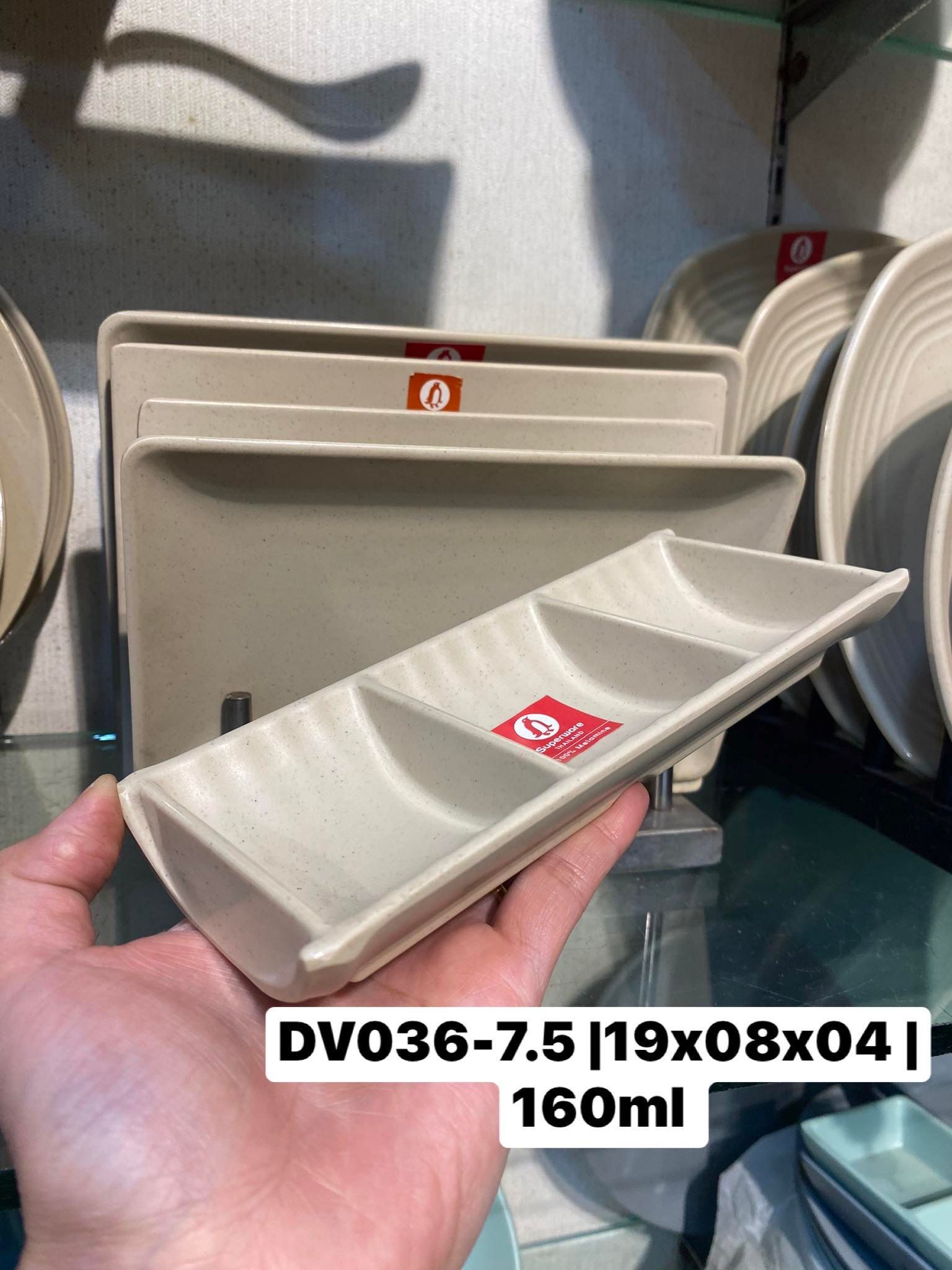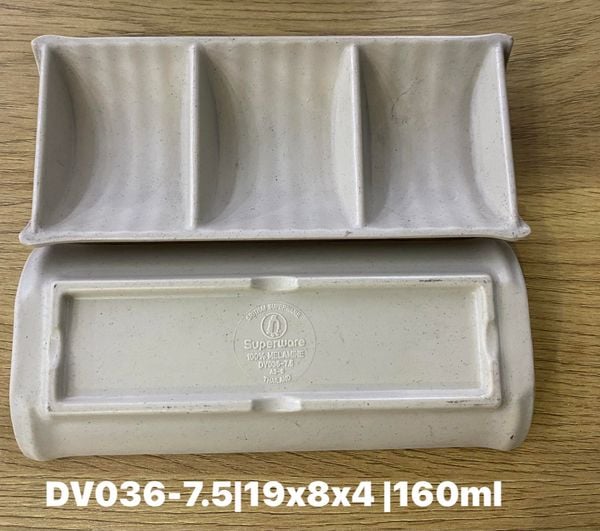Đĩa tương vuông 3 ngăn màu nâu nhám nhựa Thái Lan Melamine Superware DV 036-7.5 với kiểu dáng vuông cứng cáp. Đĩa tương tiện lợi có thể đựng cùng lúc 3 loại nước chấm khác nhau, đĩa được cách điệu bo cong trên viền đĩa, phù hợp cho các món ăn BBQ, nhà hàng phong cách Hàn Quốc, Nhật Bản.