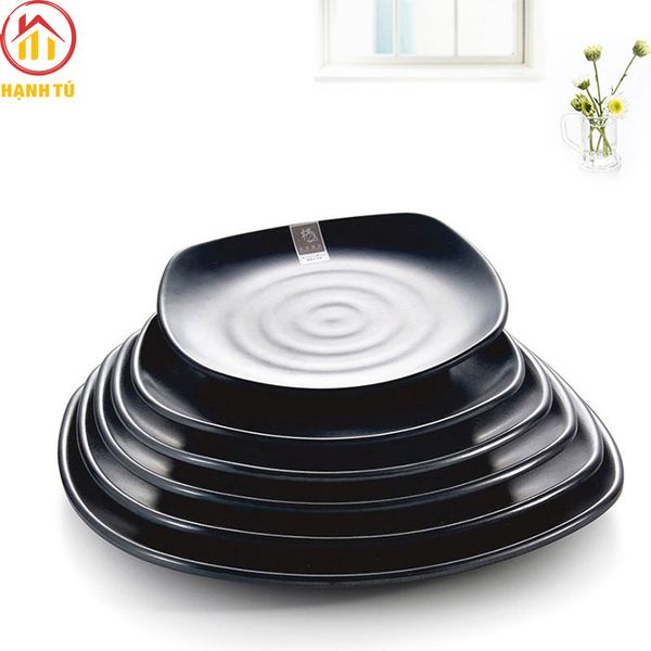 Đĩa vuông cạn nhựa melamine đen nhám nằm trong bộ sản phẩm Melamine “đen nhám” thuộc dòng bát, đĩa cao cấp của Hạnh Tú chuyên dùng cho các nhà hàng, khách sạn, quán nướng, quán ăn… theo phong cách Nhật Bản và Hàn Quốc.