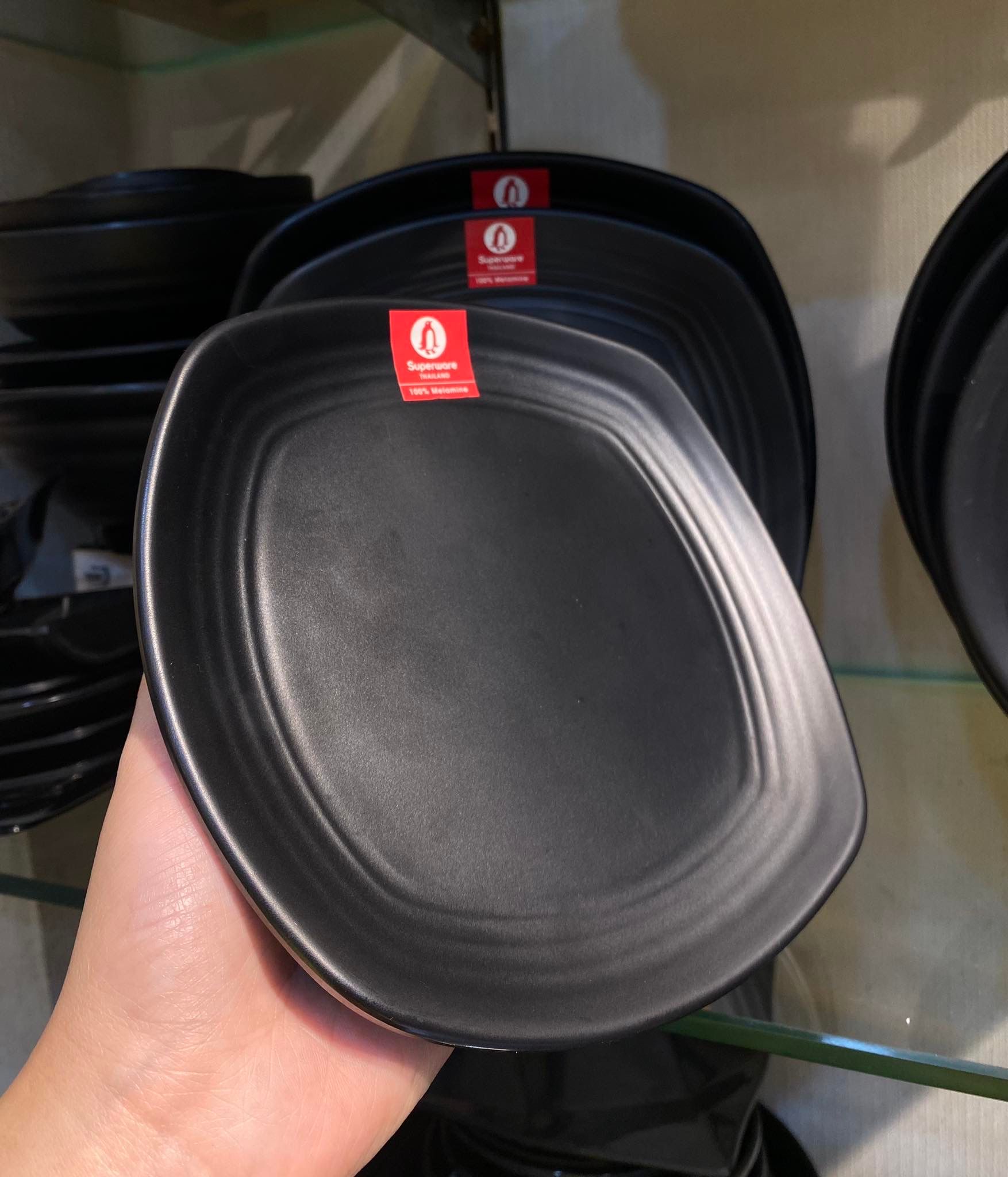 Dòng bát, đĩa được sản xuất từ nhựa Melamine là sự kết hợp hoàn hảo giữa những đặc tính tốt nhất của nhựa và sứ. Vì thế, Bát, đĩa, tô, khay gia vị, cốc Melamine Superware nhìn như bát, đĩa sứ nhưng lại có trọng lượng nhẹ nhàng, khó sứt mẻ, khó trầy xước, không bám màu. Hơn nữa, bề mặt màu đen mờ của bát, đĩa mang lại sự sang trọng, tinh tế và đẳng cấp khác biệt cho bàn ăn của bạn. Chính vì vậy, bộ sản phẩm bát đĩa Melamine đen nhám được sử dụng phổ biến trong rất nhiều khách sạn cao cấp, nhà hàng buffet lẩu nướng, nhà hàng theo phong cách Nhật Bản, Hàn Quốc.