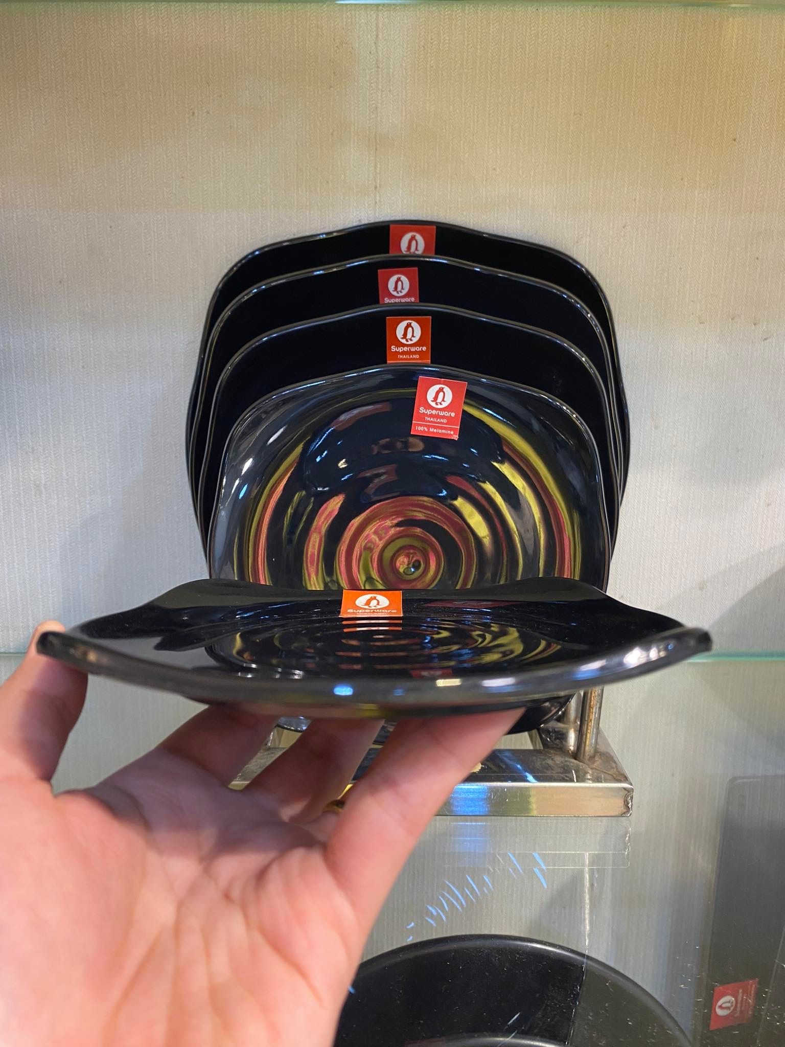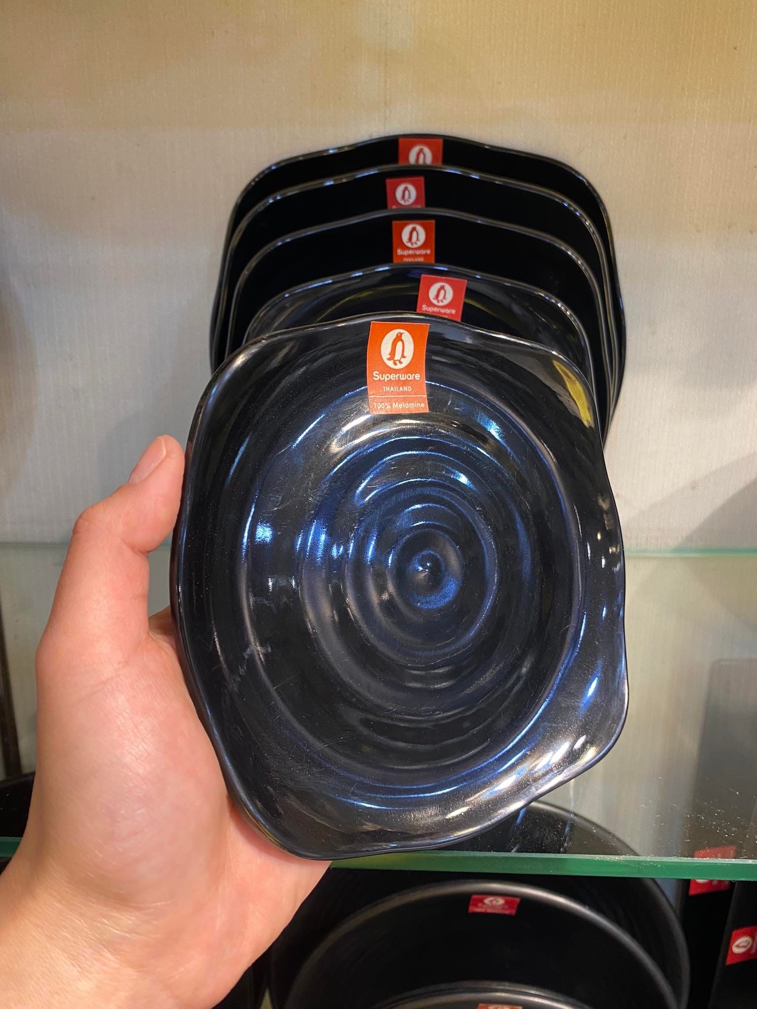 Đặc điểm riêng của đĩa vuông có vân melamine Thái Lan Superware Đen bóng
