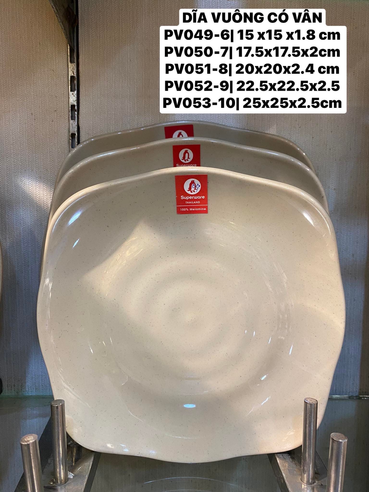 Đĩa vuông có vân melamine Superware Thái Lan Nâu Đá có kích thước: