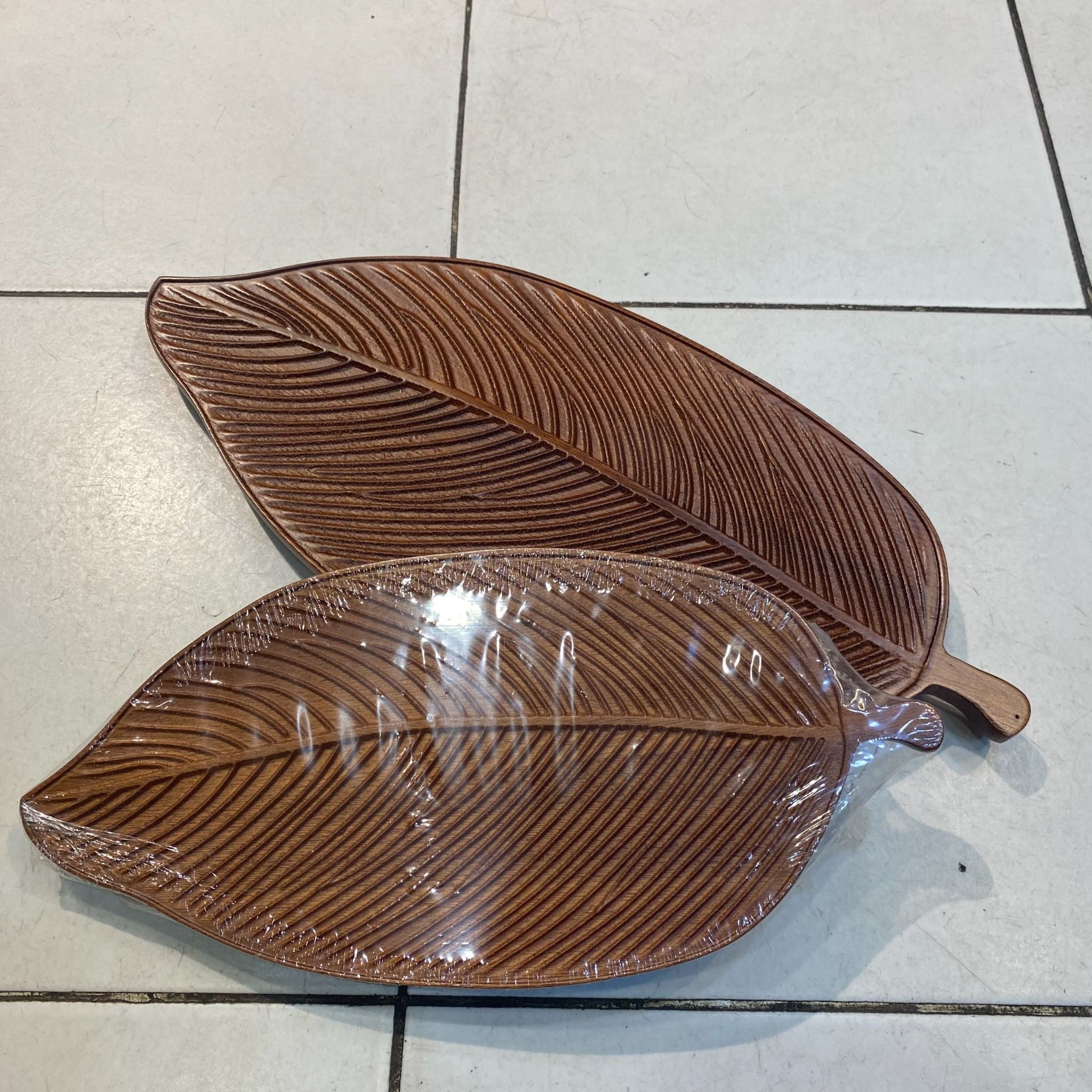 Khay gỗ hình lá bầu to decor .