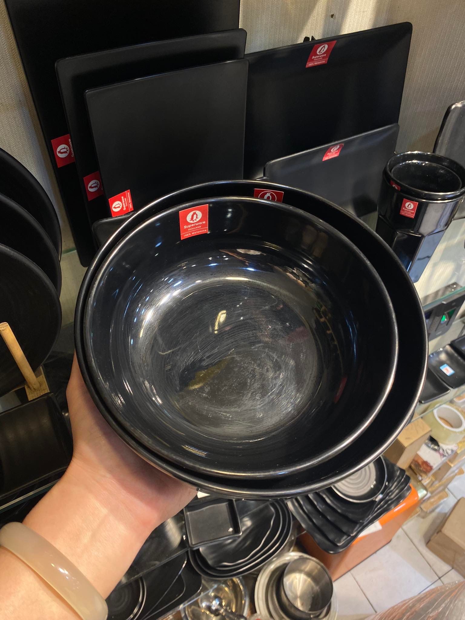 Tô melamine Superware Thái Lan đen bóng phù hợp bày trí mọi món ăn trên bàn tiệc tới bữa ăn gia đình