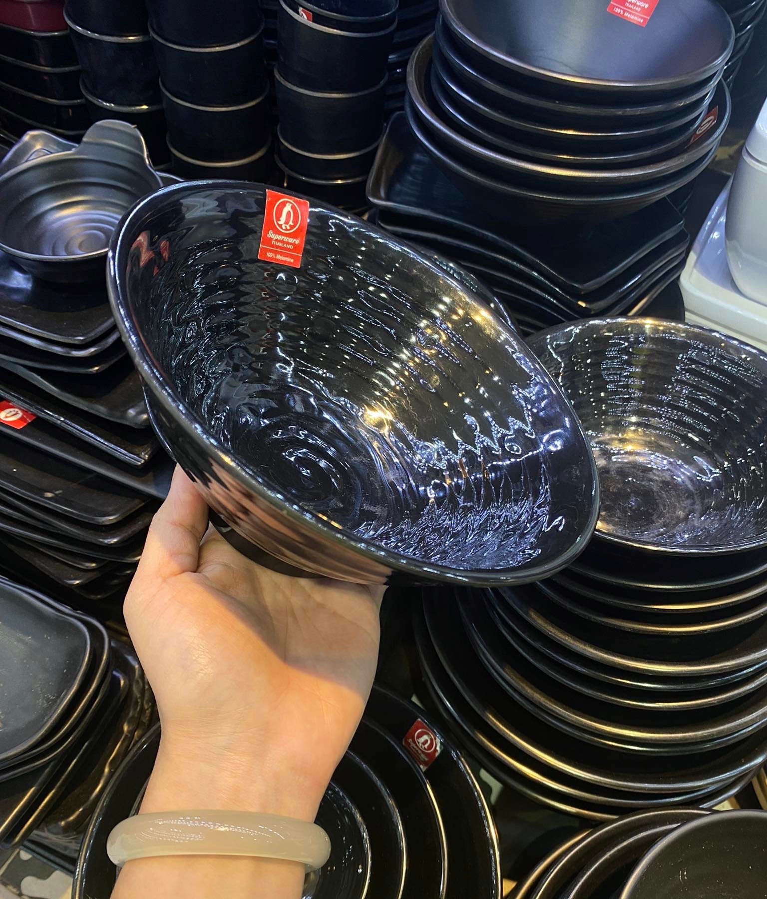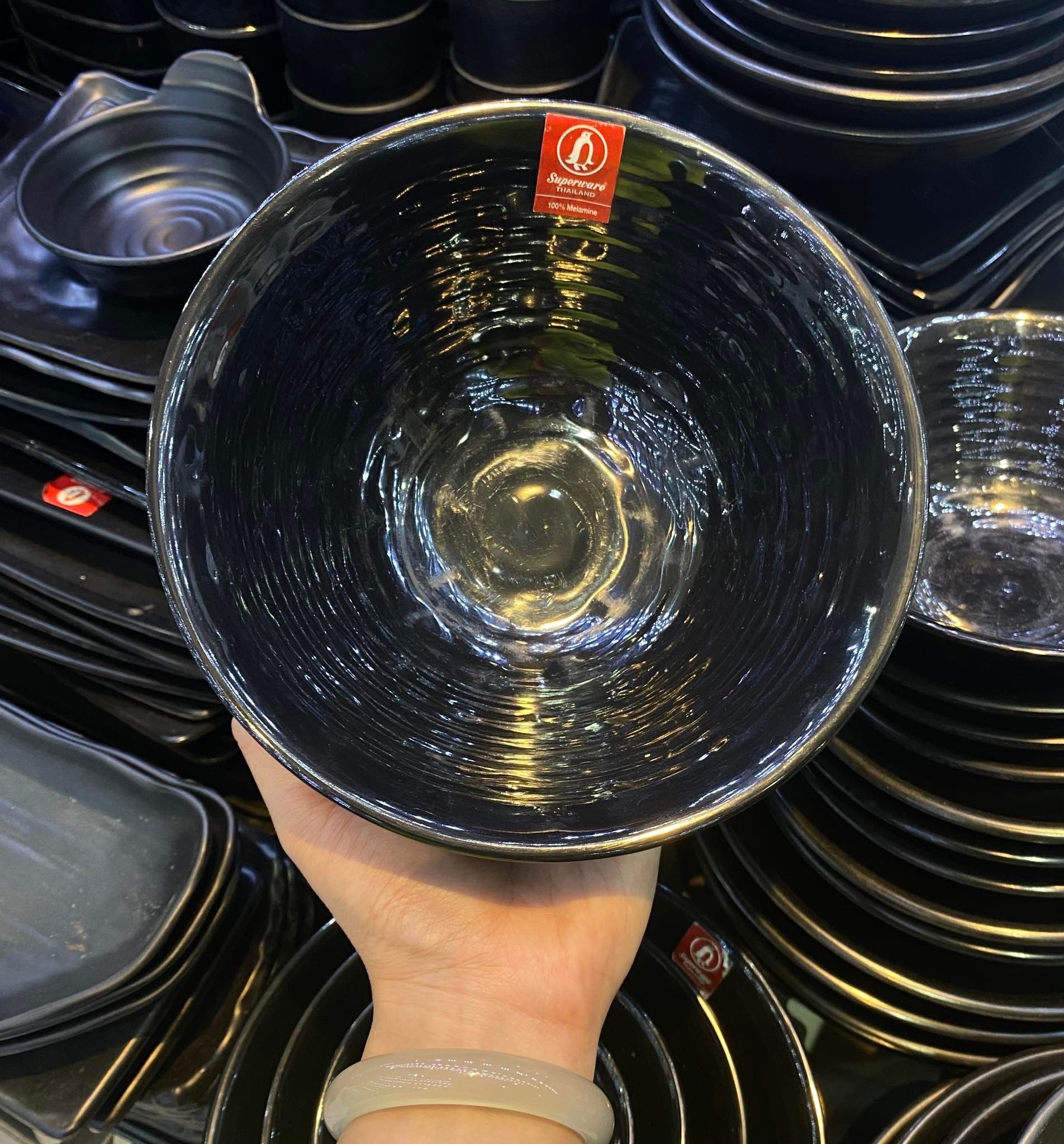 Tô Soup melamine Superware Thái Lan đen bóng phù hợp bày trí mọi món ăn trên bàn tiệc tới bữa ăn gia đình